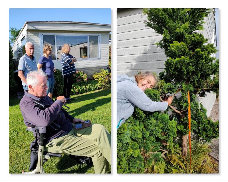 Met passen en meten is alles goed verlopen en Antje was heel gelukkig dat het mooie boompje niet weg moest. Het werd alleen een klein beetje gesnoeid. Er was veel hulp van de buren. Al met al een hele belevenis.